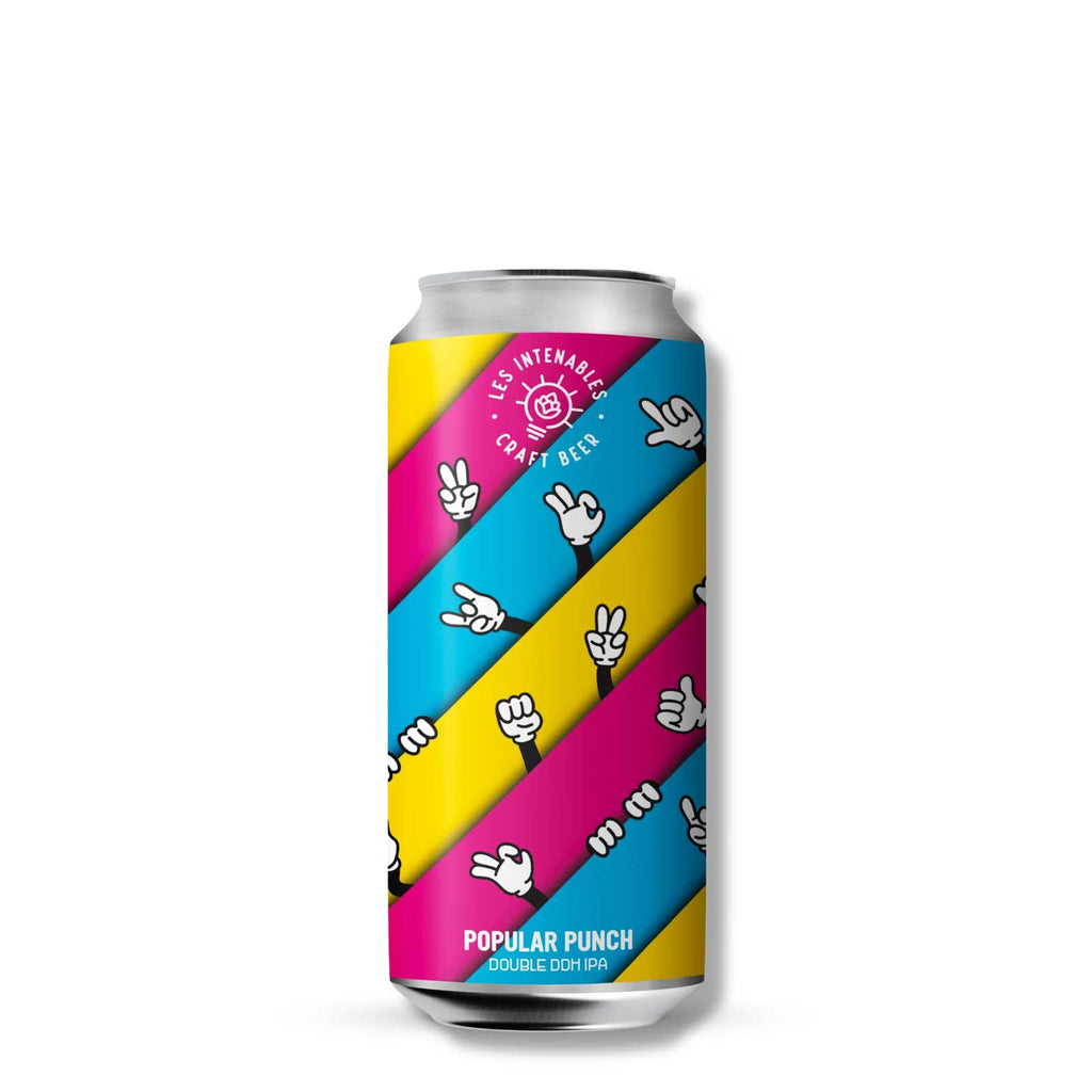 Les Intenables Popular Punch ist ein 8 % starkes Double Dry-Hopped Imperial IPA aus Rosheim, Frankreich. Mit Citra-, Simcoe- und Nectaron-Hopfen bietet es saftige tropische Fruchtaromen und einen kräftigen, erfrischenden Charakter.