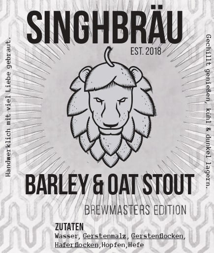 SinghBräu Barley & Oat Stout ist ein obergäriges Oatmeal Stout aus der Brewmasters Edition der Brauerei SinghBräu in Weilheim an der Teck. Mit etwa 5 % Alkohol, 12,4 ° P Stammwürze und rund 25 IBU zeigt es eine dunkle Farbe, ausgewogene Röstbittere, Kaffee- und Bitterschokoladenaromen sowie eine dezente getreidige Note durch die Gerste und Haferflocken.