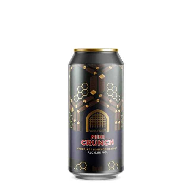 Mini Crunch von Vault City Brewing (Edinburgh, Schottland) ist ein süßer Pastry Stout mit 6 % ABV. Mit Aromen von dunkler Schokolade, Karamell-Toffee und Wabenkuchen schafft es einen dekadenten, dessertartigen Charakter — intensiv, süß und samtig im Mund.