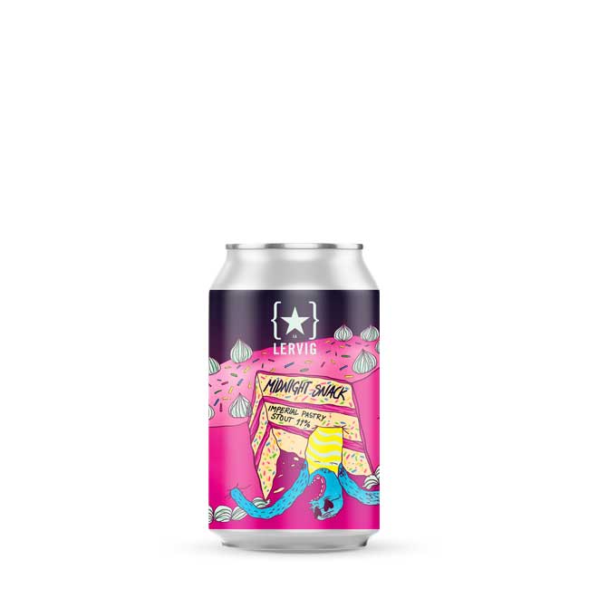 Midnight Snack von Lervig aus Stavanger (Norwegen) ist ein imperiale Pastry Stout mit 11 % ABV. Vollgepackt mit Schokolade, Karamell und cremiger Erdnussbutter liefert es ein dichtes, sahniges Mundgefühl — wie ein süßes Dessert im Glas